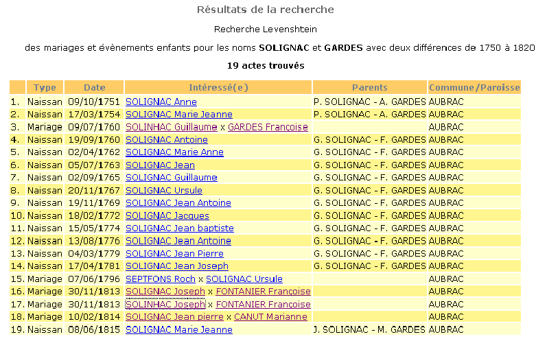 Si vous ne trouvez pas votre bonheur modifiez ou les différences ou les critères de date. Mais progressivement, et en fonction des noms que vous recherchez ! (Si vous cherchez avec 5 différences sur un nom de 5 lettres dans une base assez conséquente vous allez récupérer des milliers de noms inutiles)
